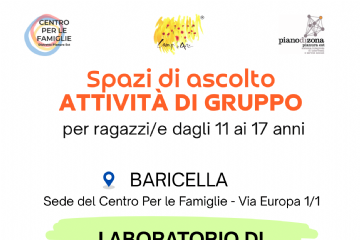 Il Centro per le Famiglie del Distretto Pianura Est ripropone il laboratorio di sperimentazione musicale dedicato a ragazze e ragazzi dagli 11 ai 17 anni, presso la sede di Baricella in Via Europa...