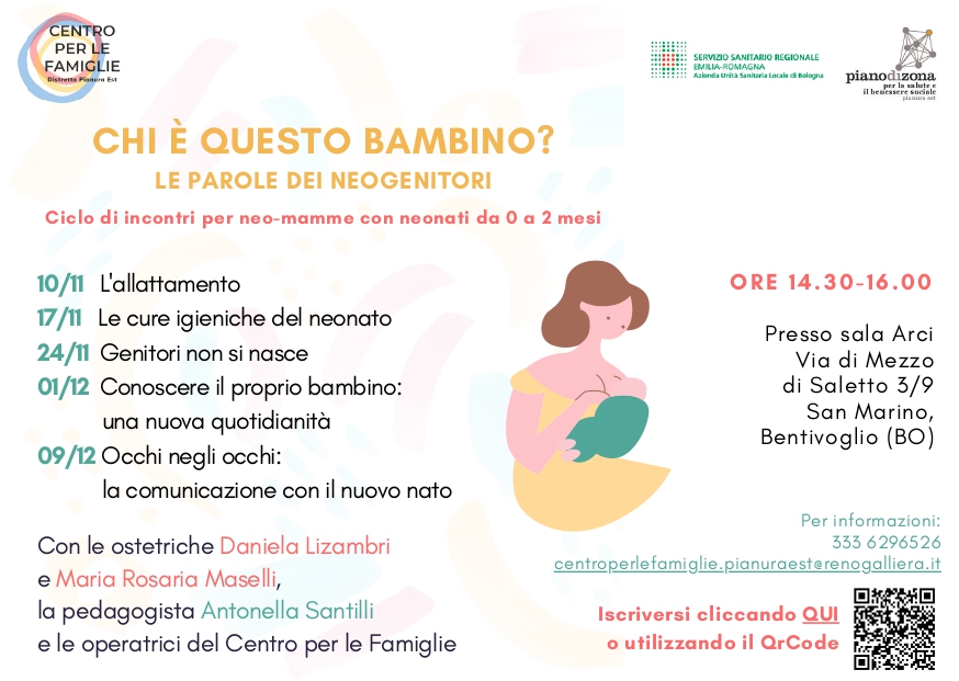 Uno spazio per informarsi, incontrarsi e confrontarsi, in collaborazione con le ostetriche Daniela Lizambri e Maria Rosaria Maselli, la pedagogista Antonella Santilli e le operatrici del Centro per le Famiglie.
