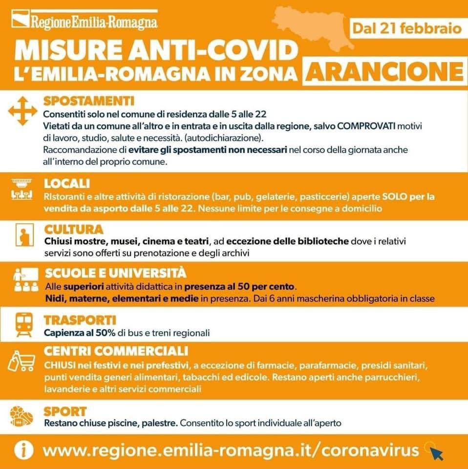 Da domani 21 Febbraio 2021 l'Emilia Romagna torna in Zona Arancione.