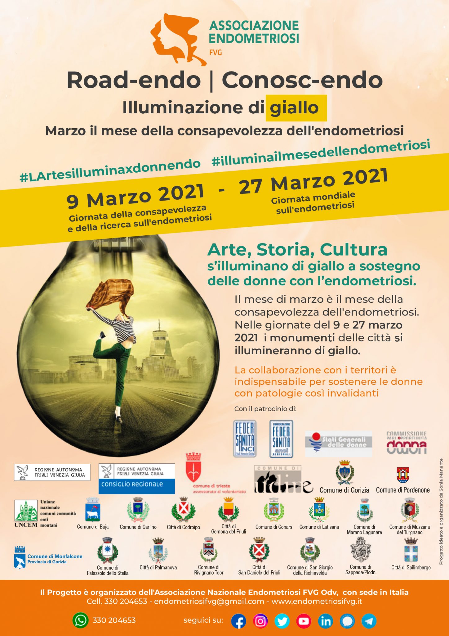 L’Associazione Endometriosi FVG promuove la campagna “ROAD-ENDO | CONOSC-ENDO Illuminazione di giallo” che culminerà il 27 marzo, nella giornata internazionale sull’endometriosi.