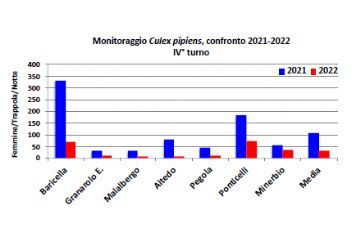 Il dato di questa settimana indica una generale diminuzione delle catture di Culex pipiens, ora su valori molto bassi anche a causa della pioggia che ha caratterizzato la nottata del rilevamento....