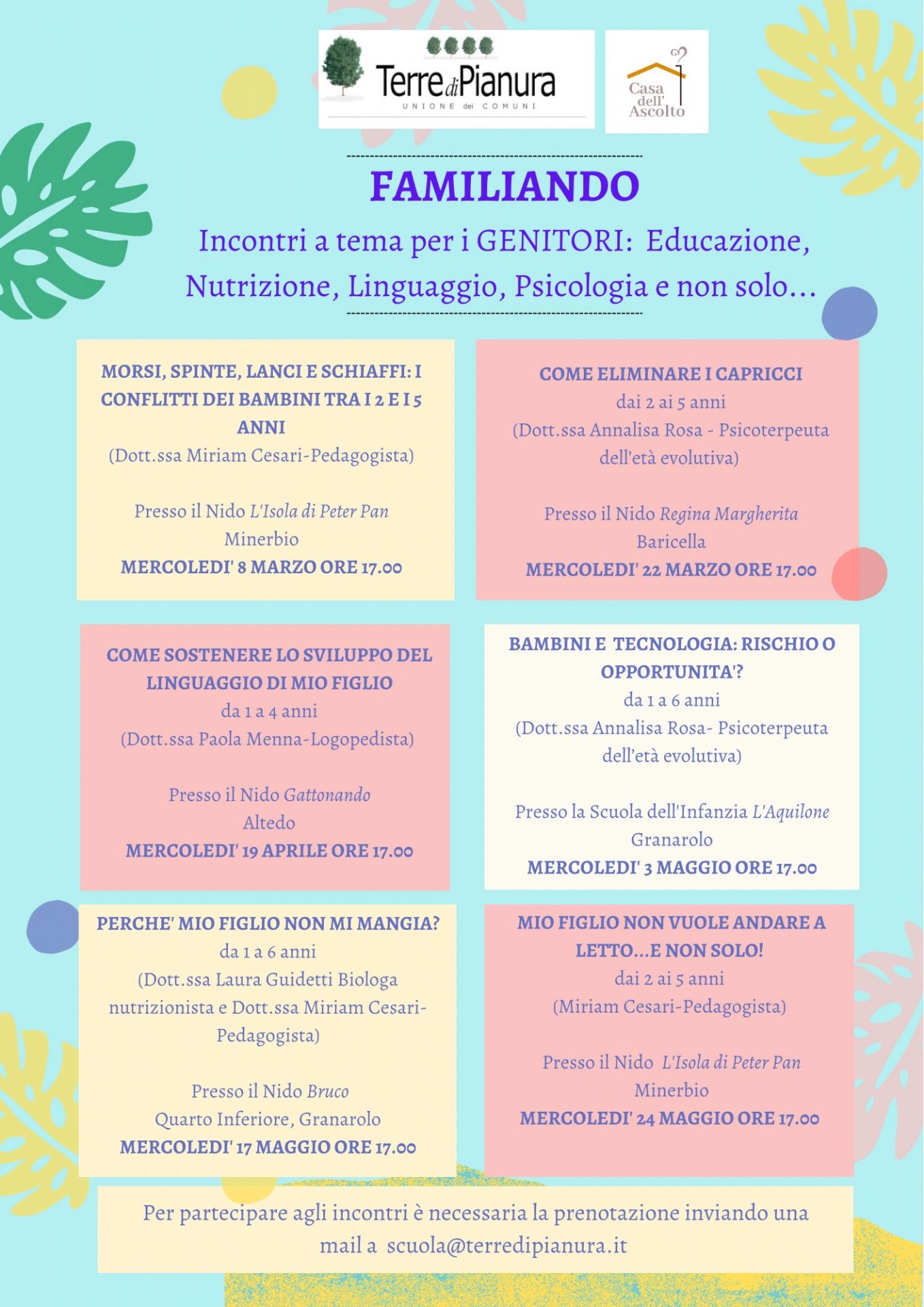 Incontri a tema gratuiti per i genitori: Educazione, Nutrizione, Linguaggio, Psicologia saranno alcune delle tematiche trattate durante questi incontri.