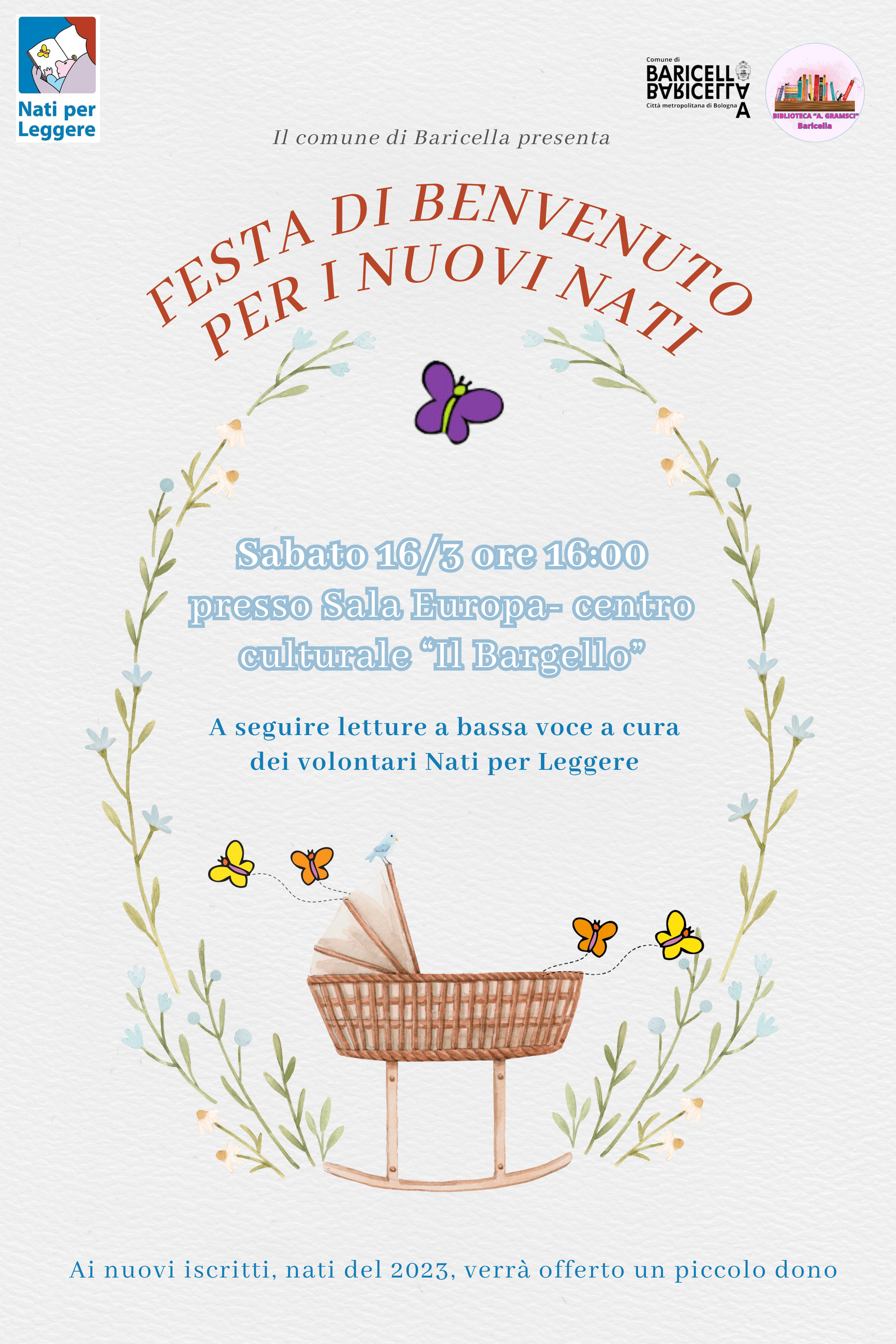 • Alle ore 16.00 presso la Sala Europa, all’interno del programma nazionale “Nati per Leggere” che sostiene la promozione della lettura per le famiglie con bambini in età prescolare, promosso dall’Associazione Culturale Pediatri, dall’Associazione Italiana Biblioteche e dal CSB Centro per la Salute del Bambino Onlus, si svolgerà “La festa di Benvenuto per i nuovi nati”.