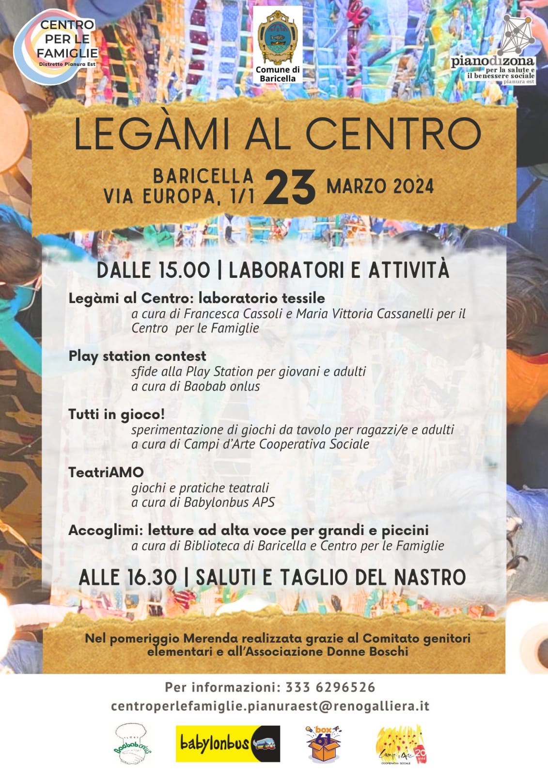 Le giornate saranno l'occasione per conoscerci, ri-conoscerci e tessere nuovi legami e fili di relazione, e saranno accompagnate da attività, laboratori rivolti a tutte le età.
