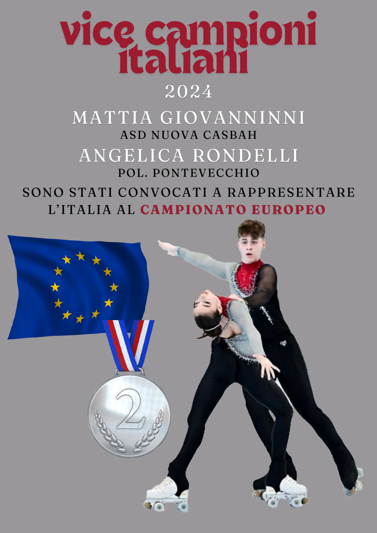La coppia mista di pattinaggio artistico composta da Mattia Giovannini della Nuova Casbah Asd e da Angelica Rondelli della Polisportiva Pontevecchio, è stata convocata a rappresentare l'Italia al campionato europeo -categoria cadetti- che si svolgerà a Fafe in Portogallo dal 21 al 31 Luglio 2024.
