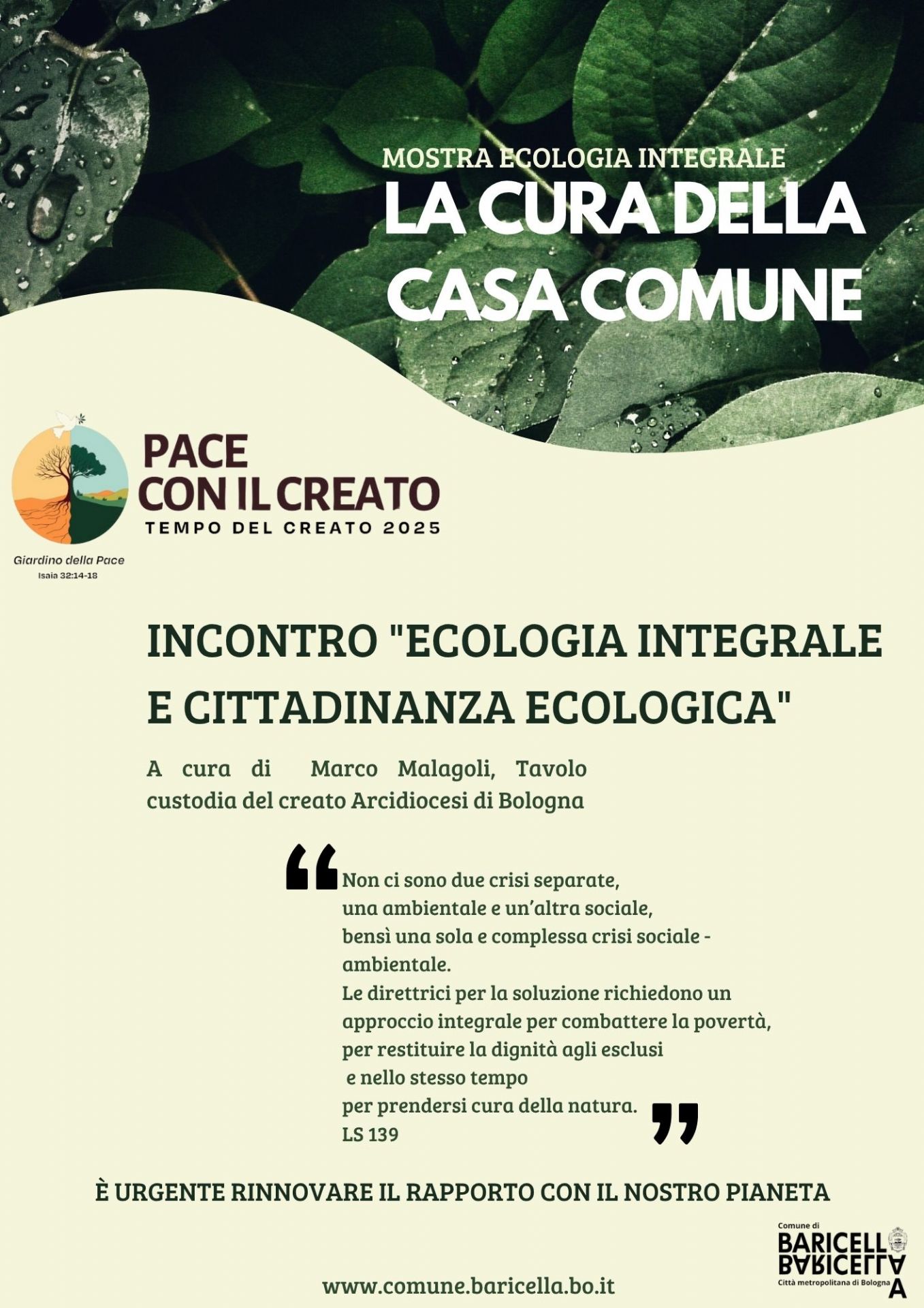 In occasione della mostra “La cura della casa comune”, promossa dal Comitato della Zona Pastorale e ospitata dal Comune di Baricella durante la manifestazione Fior di Fiera, è ora disponibile online il materiale presentato nel corso dell’intervento dell’11 maggio, a cura di Marco Malagoli, coordinatore del Tavolo diocesano per la Custodia del Creato.