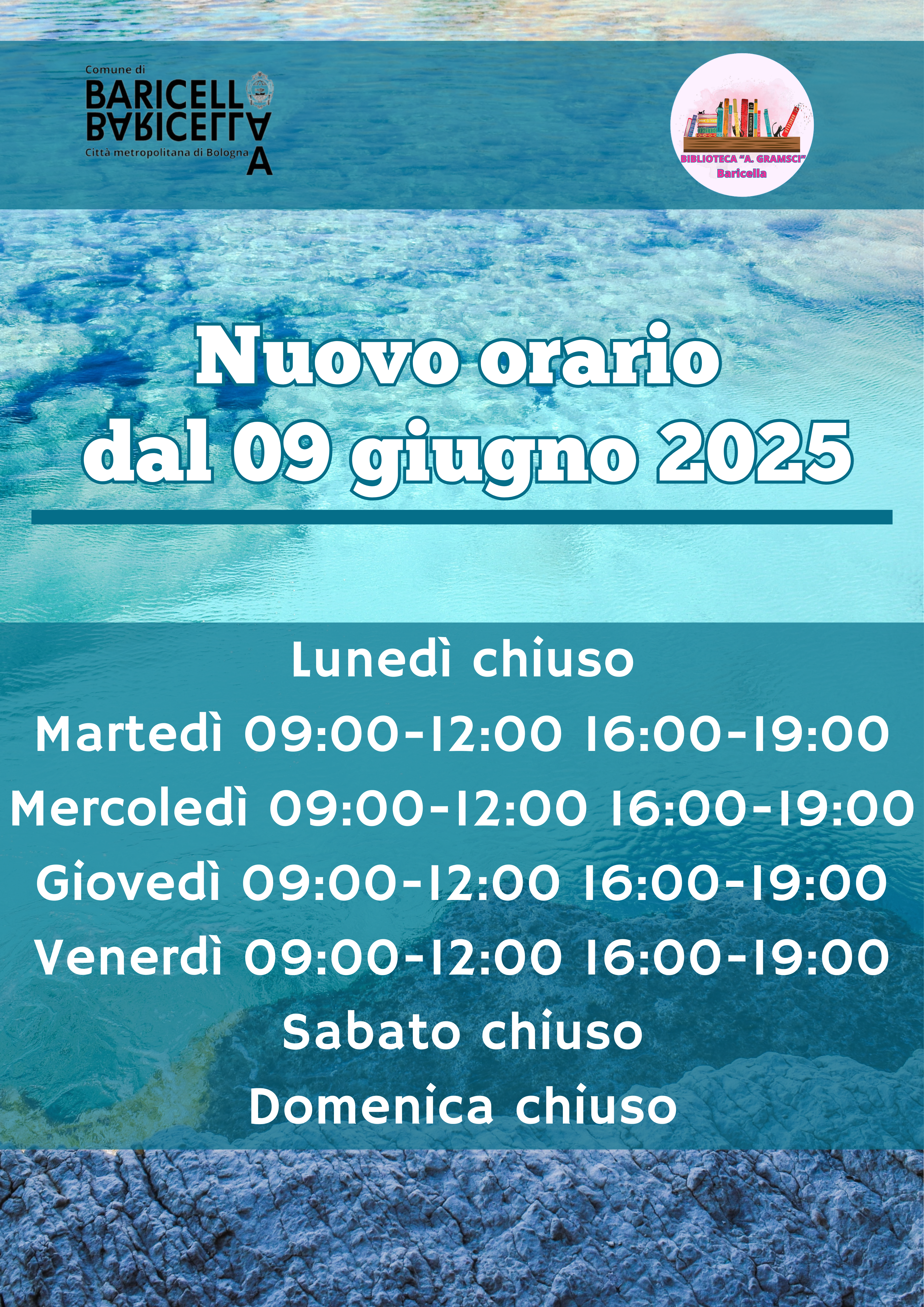 Riparte il 9 giugno l’orario estivo della biblioteca, che sarà così articolato: