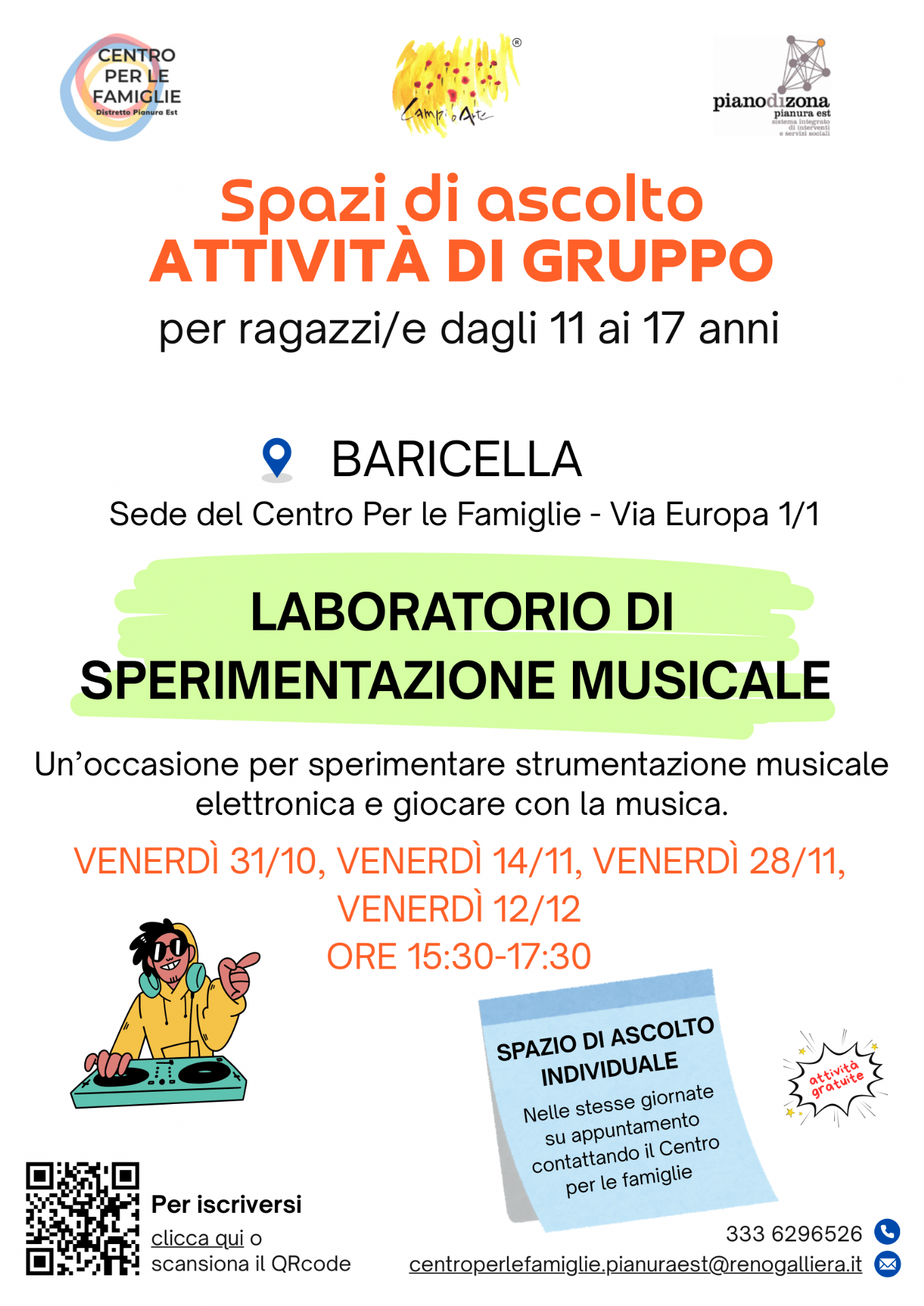 Il Centro per le Famiglie del Distretto Pianura Est ripropone il laboratorio di sperimentazione musicale dedicato a ragazze e ragazzi dagli 11 ai 17 anni, presso la sede di Baricella in Via Europa n. 1.