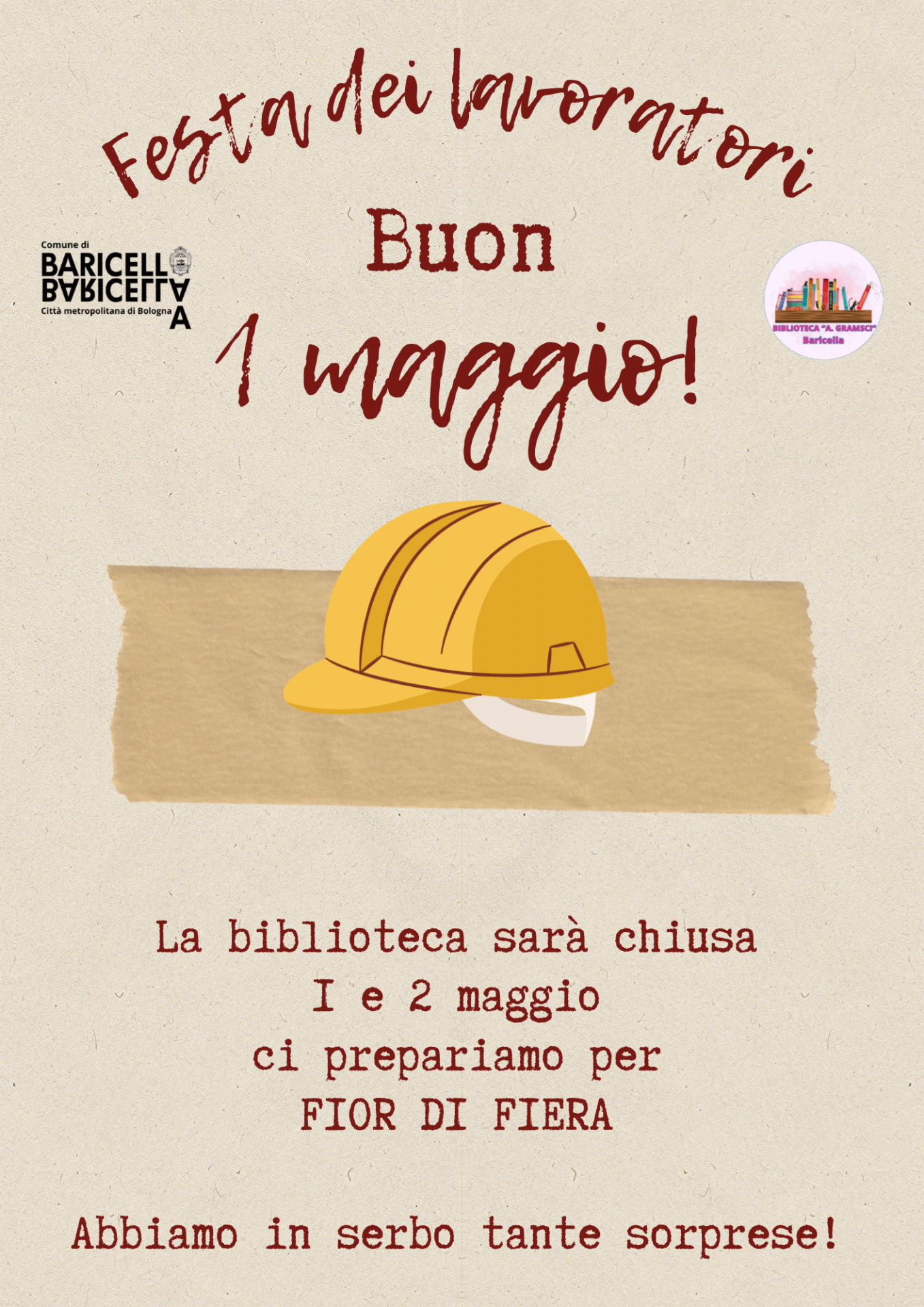 Si informa l’utenza che la Biblioteca Comunale resterà chiusa in occasione della Festa dei Lavoratori nelle giornate di venerdì 1 maggio e sabato 2 maggio.