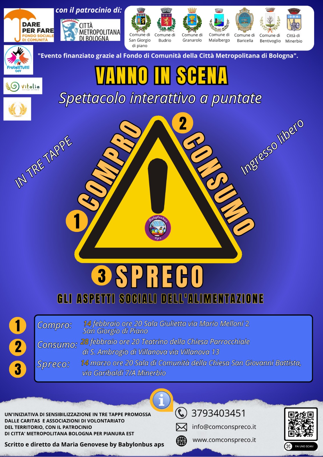 ComproConsumoSpreco nasce all'interno di un progetto promosso dalla Città Metropolitana di Bologna, finanziato dal Fondo Sociale di Comunità DarePerFare e attivo nel territorio del Distretto Pianura Est.