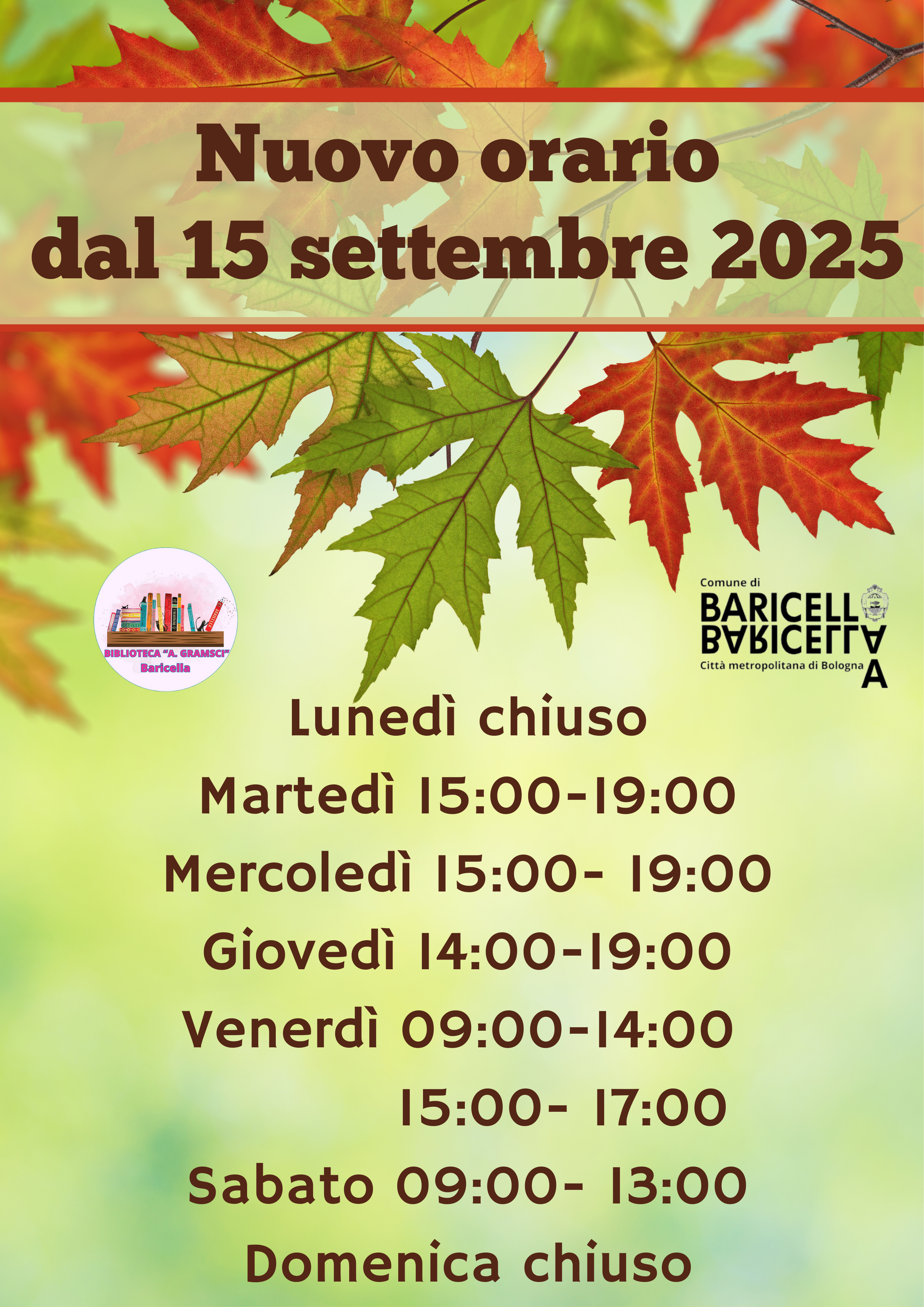 ORARIO INVERNALE in vigore dal 15 settembre 2025