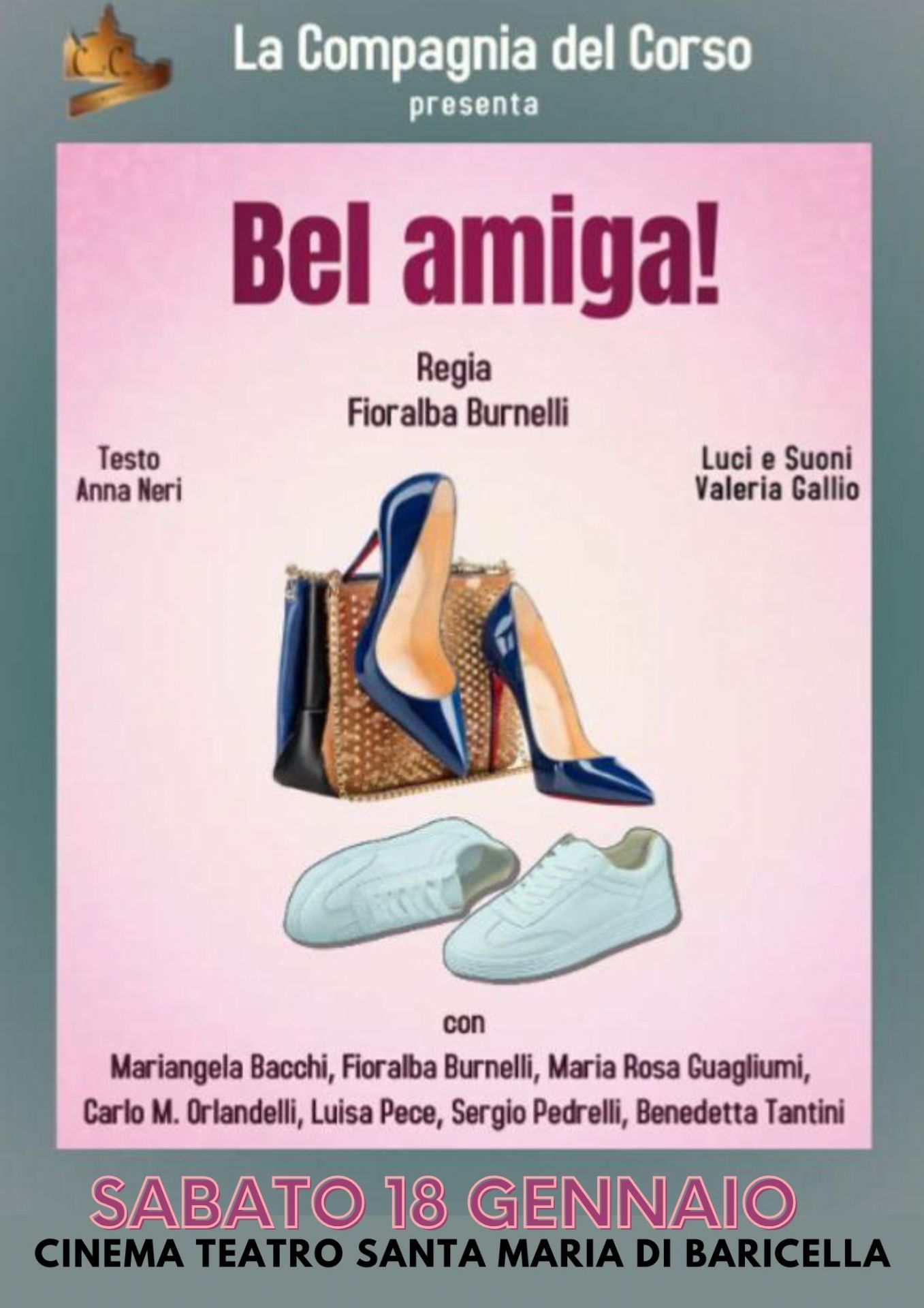 Sabato 18 Gennaio alle ore 21:00 la Compagnia del Corso presenta lo spettacolo Bel Amiga!, regia di Fioralba Burnelli, testo di Anna Neri.