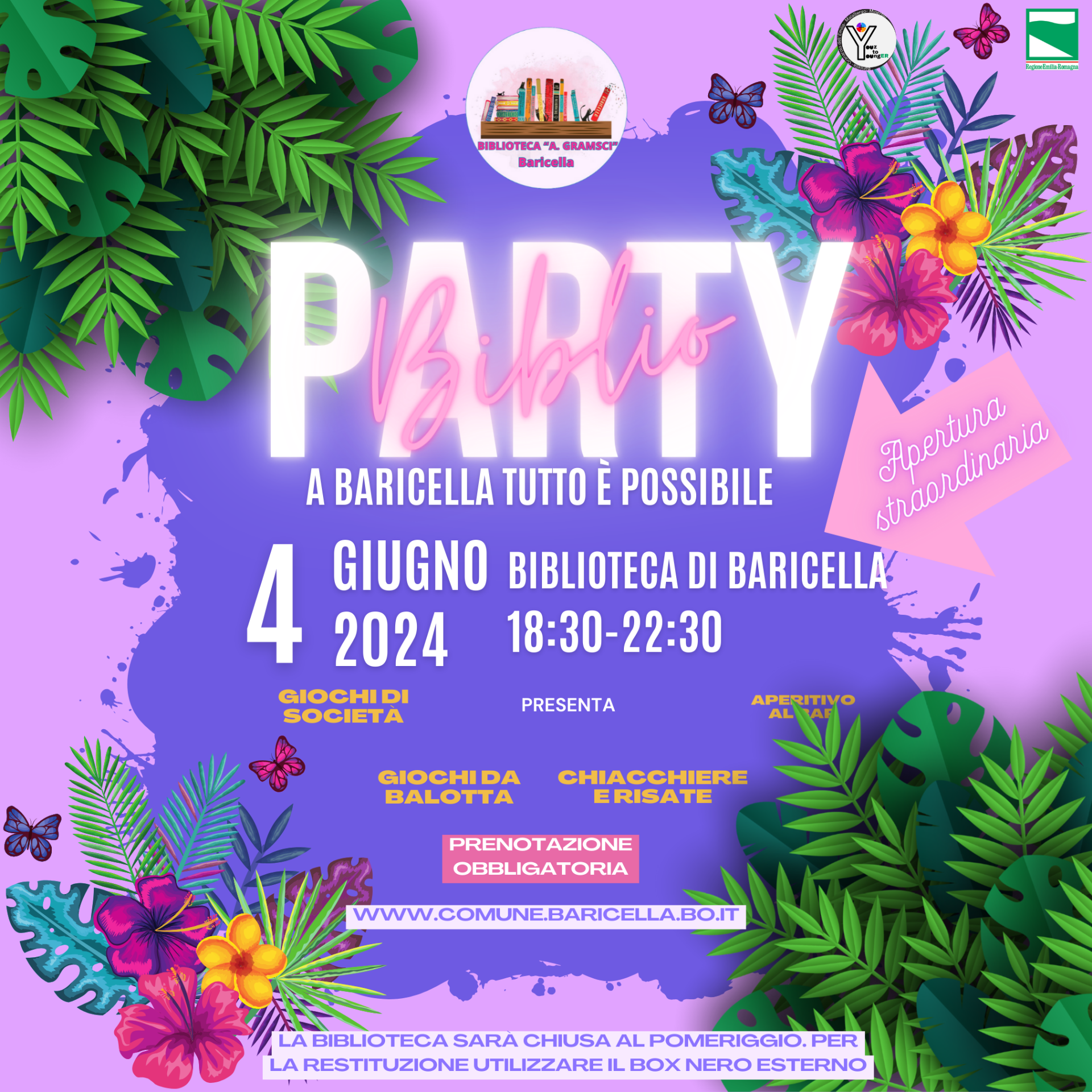 Martedì 5 giugno 2024 tutti in biblioteca di sera... dalle 18:30 alle 22:30 potrai prendere in prestito libri, giocare insieme a noi o scambiare 4 chiacchiere. Ti aspettiamo!!!!