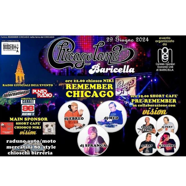 Un evento musicale che vede la luce per la quinta volta a Baricella, a cura del Comitato operatori economici uniti. Una serata speciale tutta musicale ispirata alla famosa discoteca Chicago di Baricella, un pezzo di storia del nostro paese che negli anni '70 e '80 di ragazzi ne fece ballare molti!