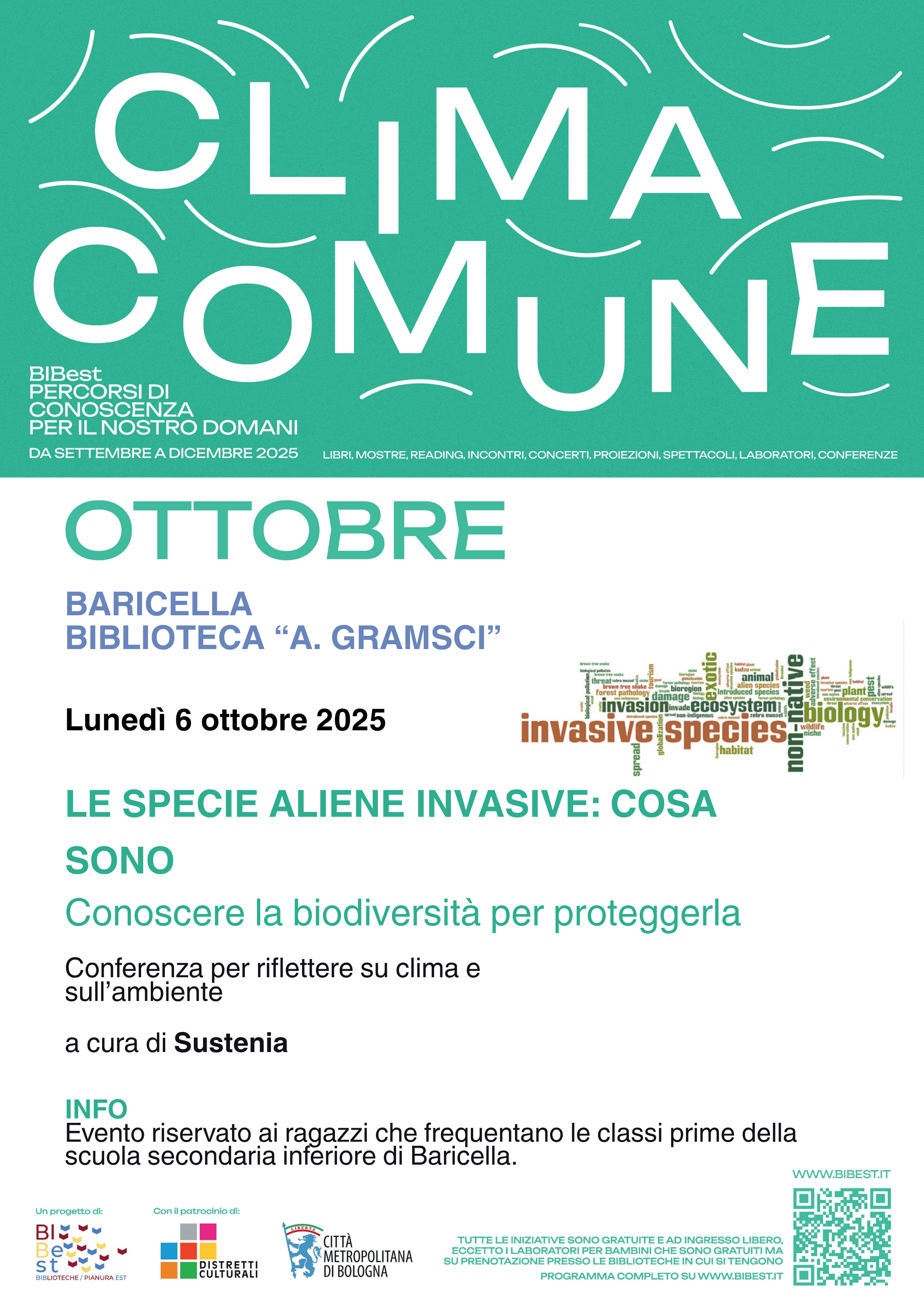 La rassegna di BiBest – Biblioteche Pianura Est, realizzata in collaborazione con il Comune di Baricella e la Biblioteca A. Gramsci e dedicata al tema del cambiamento climatico, approda anche nel nostro Istituto Comprensivo e coinvolgerà i ragazzi delle classi prime della scuola secondaria di Baricella.