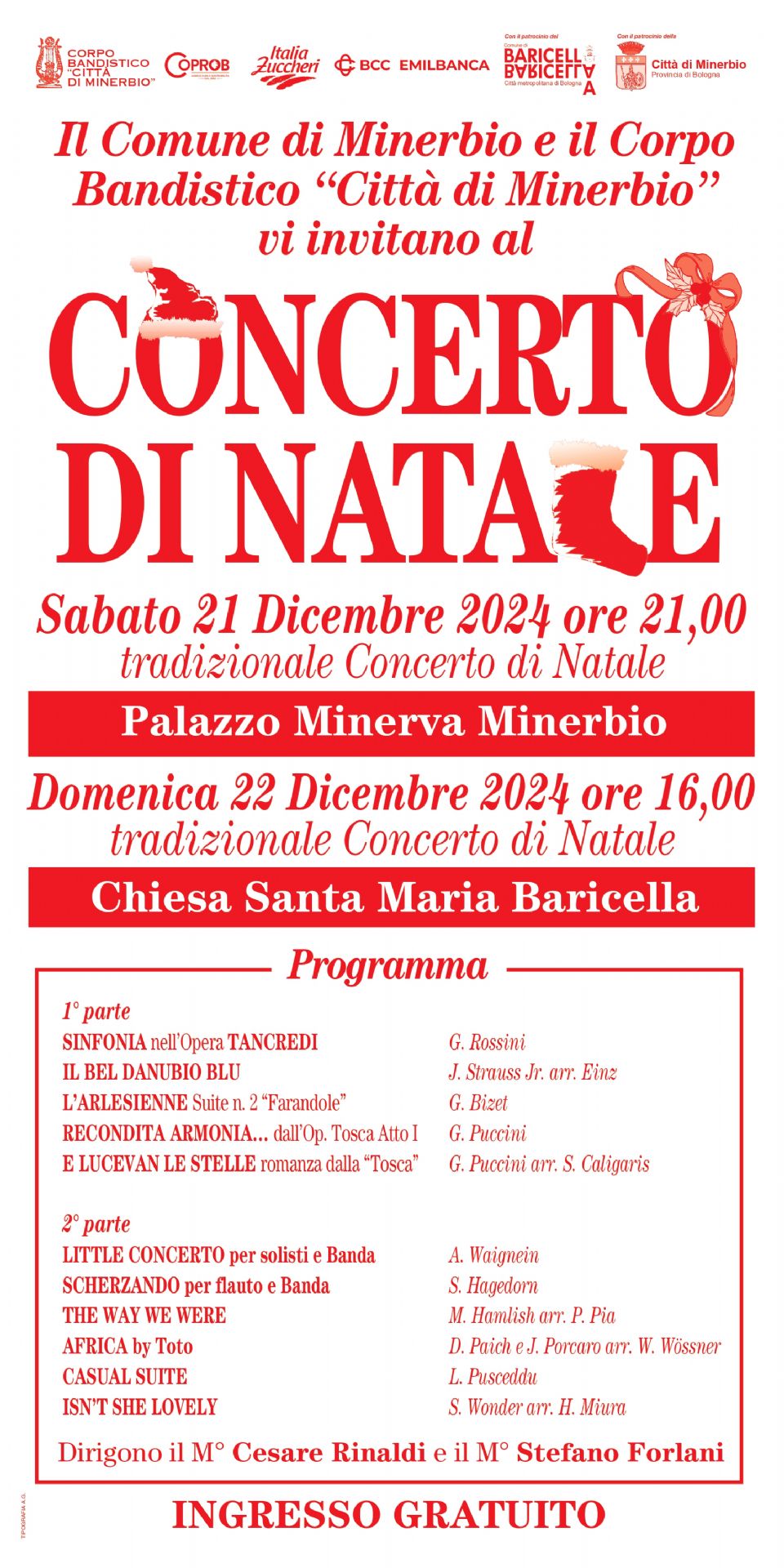Domenica 22 dicembre 2024 alle ore 16:00 il Comune di Baricella e il Corpo Bandistico "Città di Minerbio" invitano la cittadinanza al tradizionale Concerto di Natale presso la Chiesa Santa Maria di Baricella in Piazza Carducci.
