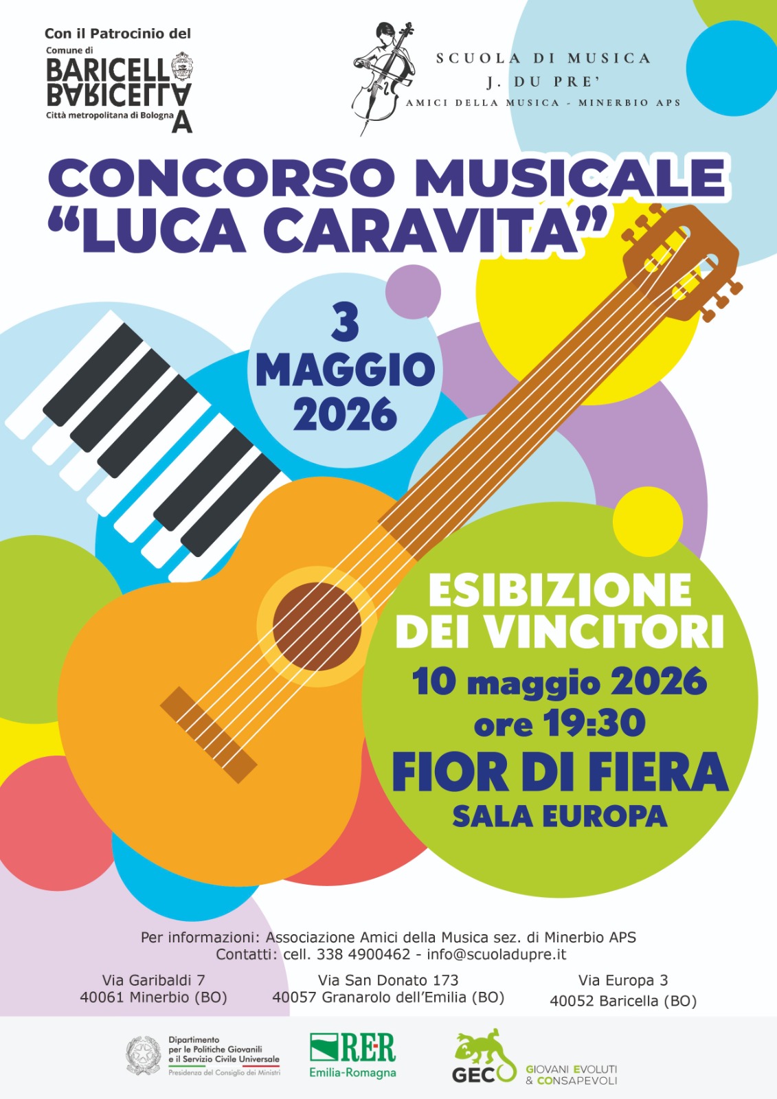 Realizzato in collaborazione con la Scuola di Musica J. Du Pré, il concorso rappresenta un'occasione speciale di incontro e confronto per i giovani musicisti che frequentano i corsi del Bargello di Baricella. A sostenere gli allievi più meritevoli, le borse di studio messe a disposizione dalla famiglia Caravita, nella persona di Giovanni Andalò.