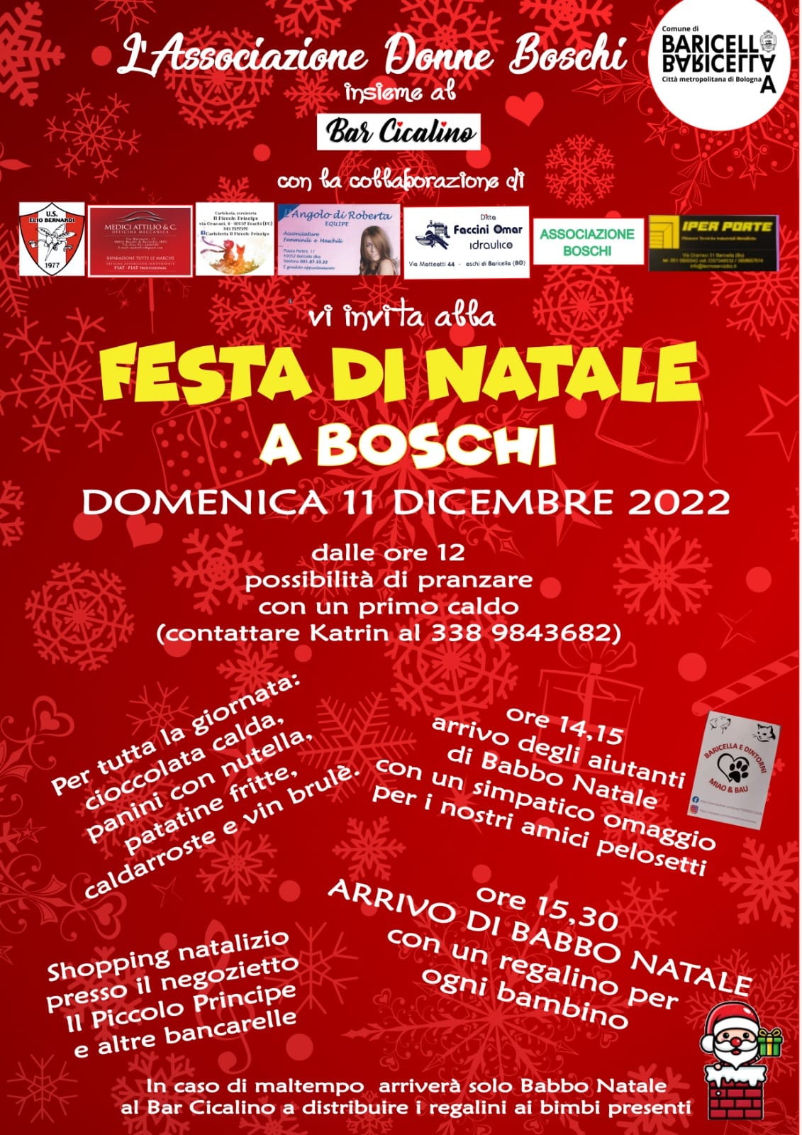 L'Associazione Donne Boschi, in collaborazione con il Bar Cicalino e altri operatori economici del territorio, vi aspetta Domenica 11 Dicembre 2022 a Boschi di Baricella per la tradizionale Festa di Natale con il "mitico" Babbo Natale a Boschi.