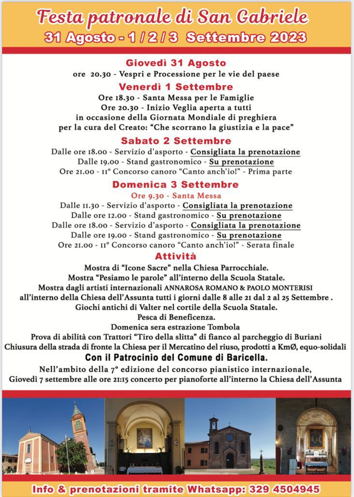 Come ogni anno la Parrocchia di San Gabriele, in occasione delle celebrazioni per il suo Santo Protettore organizza la tradizionale Festa patronale, un momento di festeggiamenti per tutta la comunità baricellese.