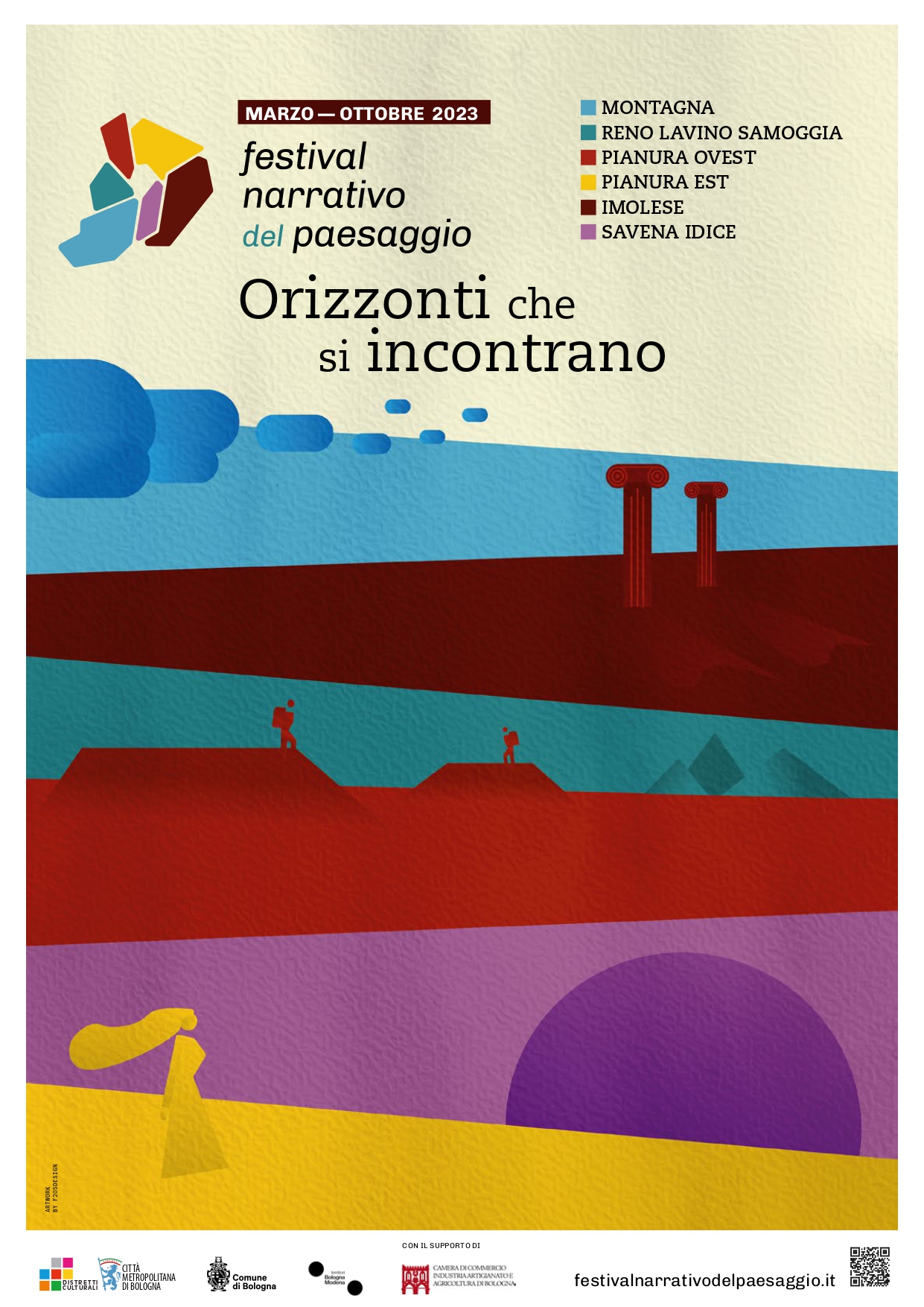 Promosso dalla Città metropolitana di Bologna in stretta connessione con i sei Distretti culturali, il Festival Narrativo del Paesaggio attraverso eventi teatrali, letture, incontri e proiezioni cinematografiche, racconterà la storia dei territori metropolitani percorsi dalle Via degli Dei, Via della Lana e della Seta, Mater Dei, Flaminia minor, Via degli Etruschi, Piccola Cassia, Ciclovia del Sole, Ciclovia del Navile, Ciclovia del Santerno, cammino della Linea Gotica e Via del Fantini.