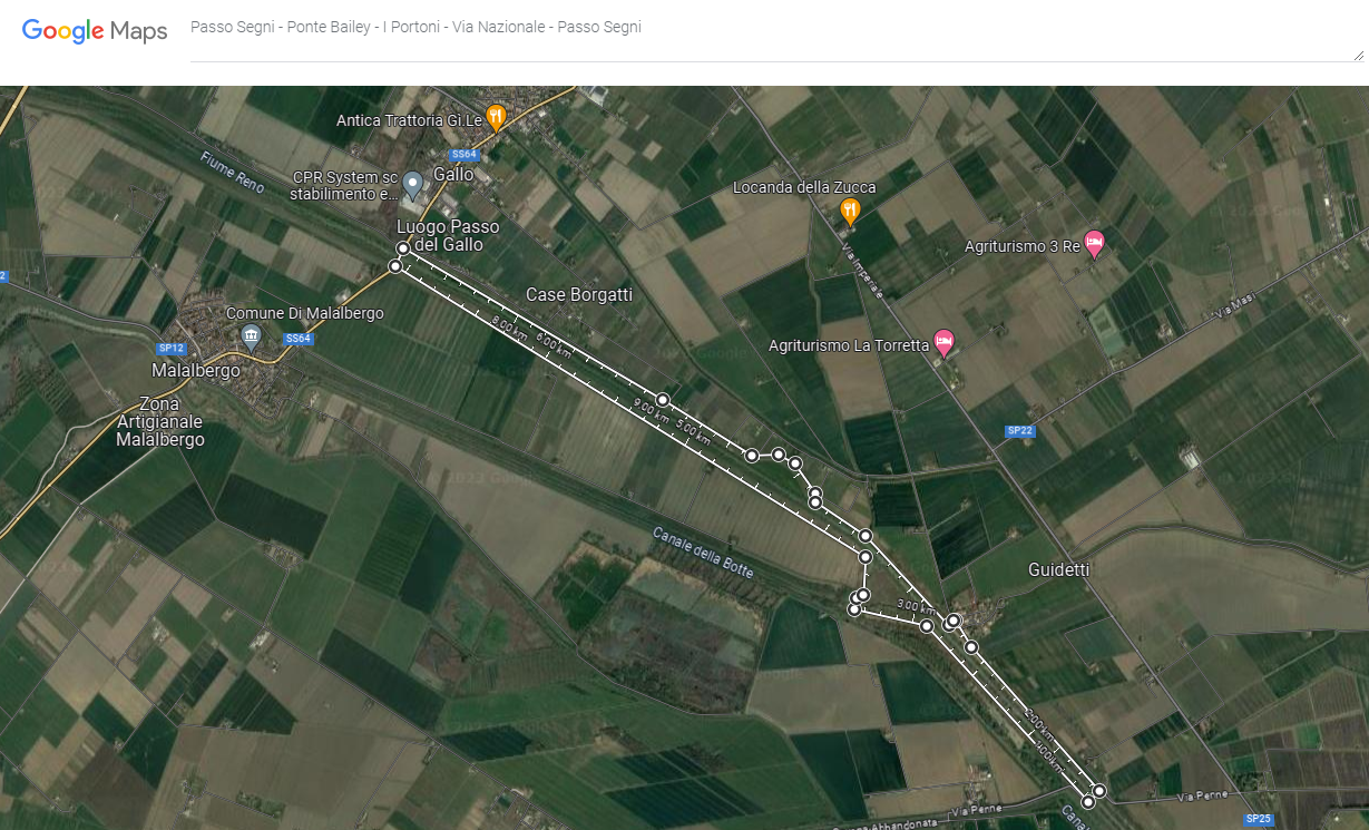 Un trekking ad anello lungo gli argini del Reno, la cui storia è legata a quella della nostra pianura e in particolar modo di Passo Segni, il piccolo borgo che per i baricellesi sorge “al di là del Reno”. Le soste lungo il percorso saranno animate dagli interventi artistici di narrazione teatralizzata, a cura di Carlotta Grillini, di aneddoti, storie e modi di dire arrivati a noi grazie allo storico locale Gastone Quadri, che li ha raccolti magistralmente nella raccolta "Fricandò", termine mutuato dal dialetto bolognese e che vuol dire "di tutto un po'".