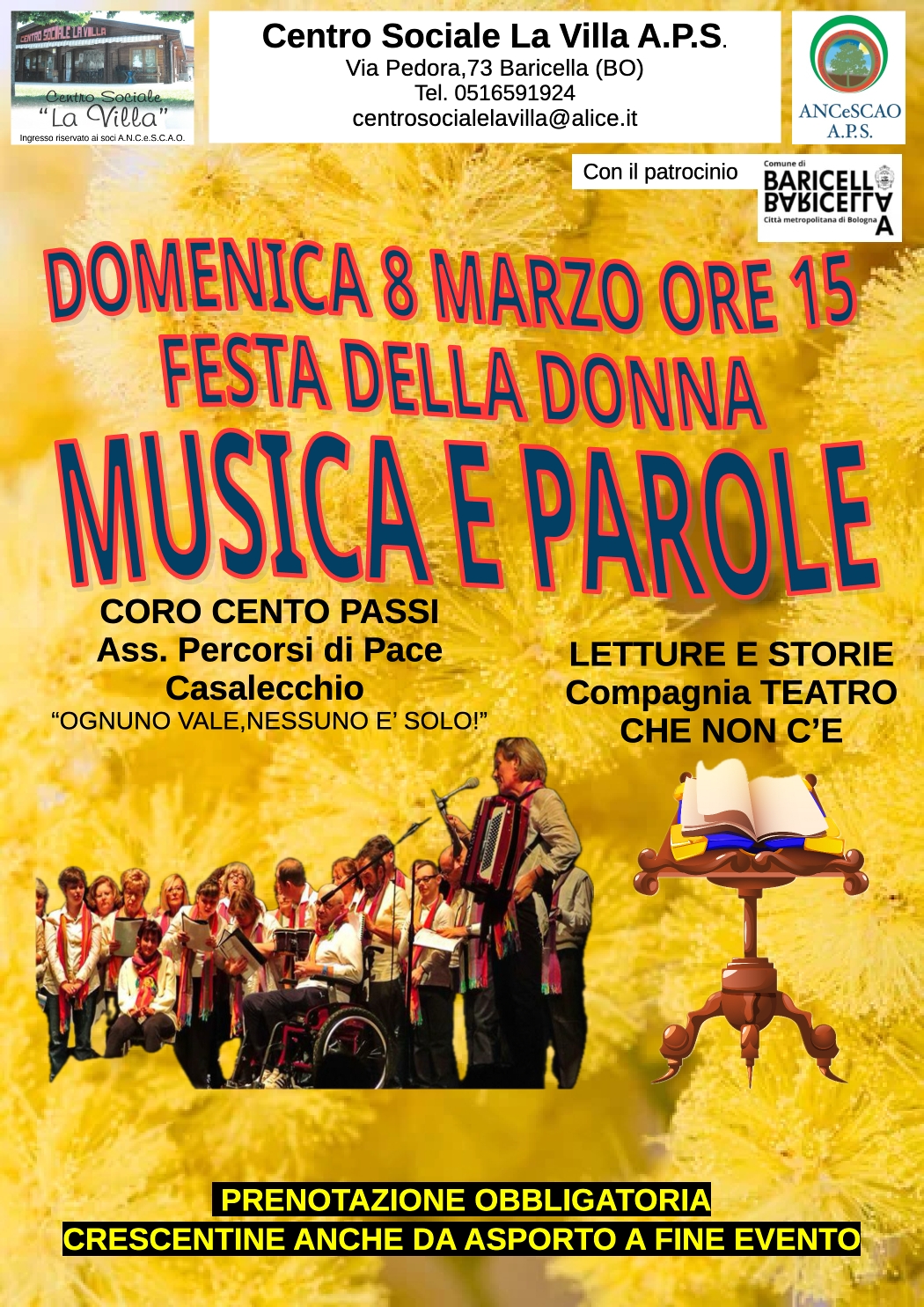 8 marzo ore 15:00 – Centro Sociale la Villa, Via Pedora 73 , Baricella