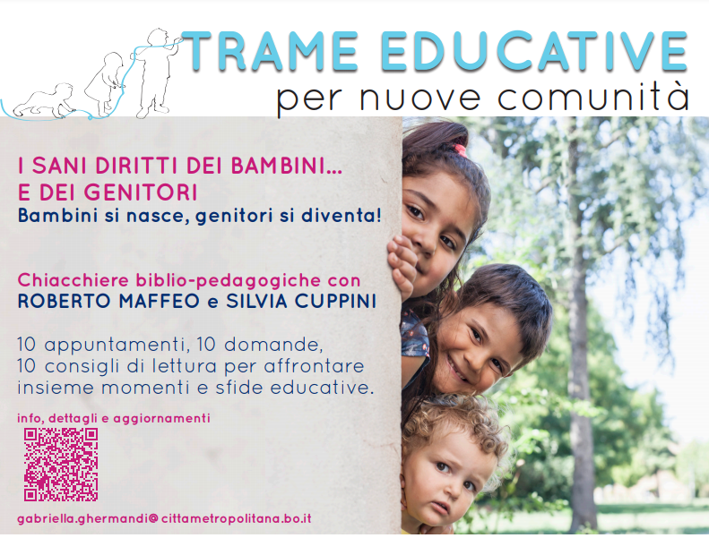 Ha preso il via lo scorso 3 Giugno a Castiglione dei Pepoli il progetto “Trame educative per nuove comunità” con dieci incontri dal titolo "I sani diritti dei bambini... e dei gentori”, promosso da Città metropolitana e Istituzione Gian Franco Minguzzi, progetto dedicato al sostegno alla genitorialità per bambini nella fascia 0-6 anni.