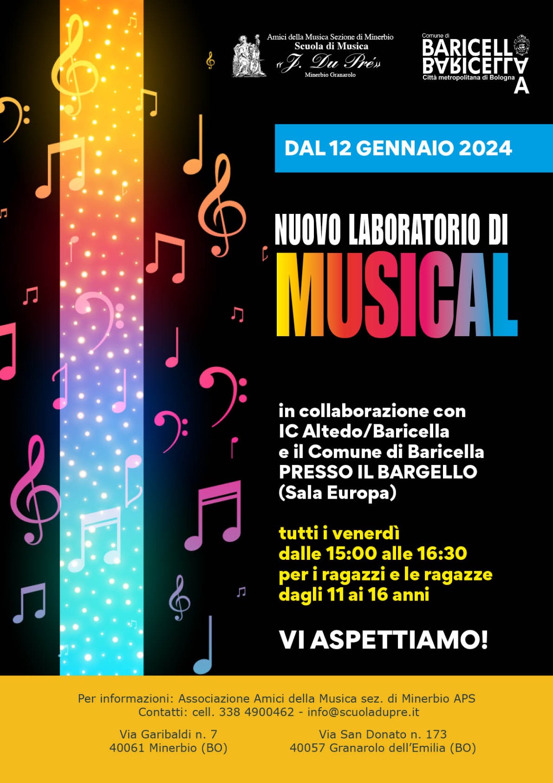 Grazie alla collaborazione dell'Associazione Amici della Musica e dell'Istituto comprensivo di Malalbergo e Baricella,  da Venerdì 19 Gennaio prende il via il Laboratorio gratuito di Musical per ragazzi e ragazze dagli 11 ai 16...