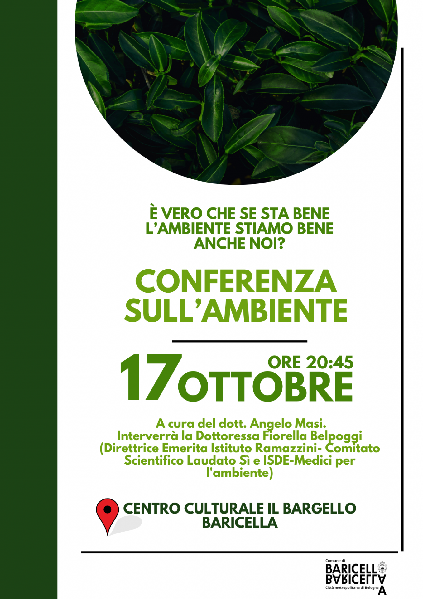 Iniziativa a cura del dott. Angelo Masi. Interverrà la Dottoressa Fiorella Belpoggi (Direttrice Emerita Istituto Ramazzini- Comitato Scientifico Laudato Sì e ISDE-Medici per l'ambiente).
