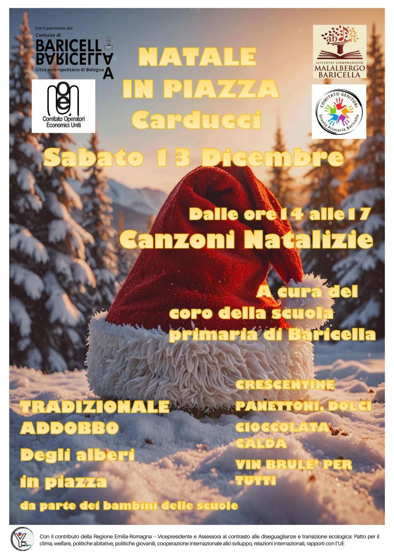 Il Comune di Baricella invita tutta la cittadinanza a partecipare a un pomeriggio per immergersi nella magia delle feste: Sabato 13 dicembre, dalle ore 14.00 alle 17.00, torna il tradizionale appuntamento con Natale in Piazza Carducci.
