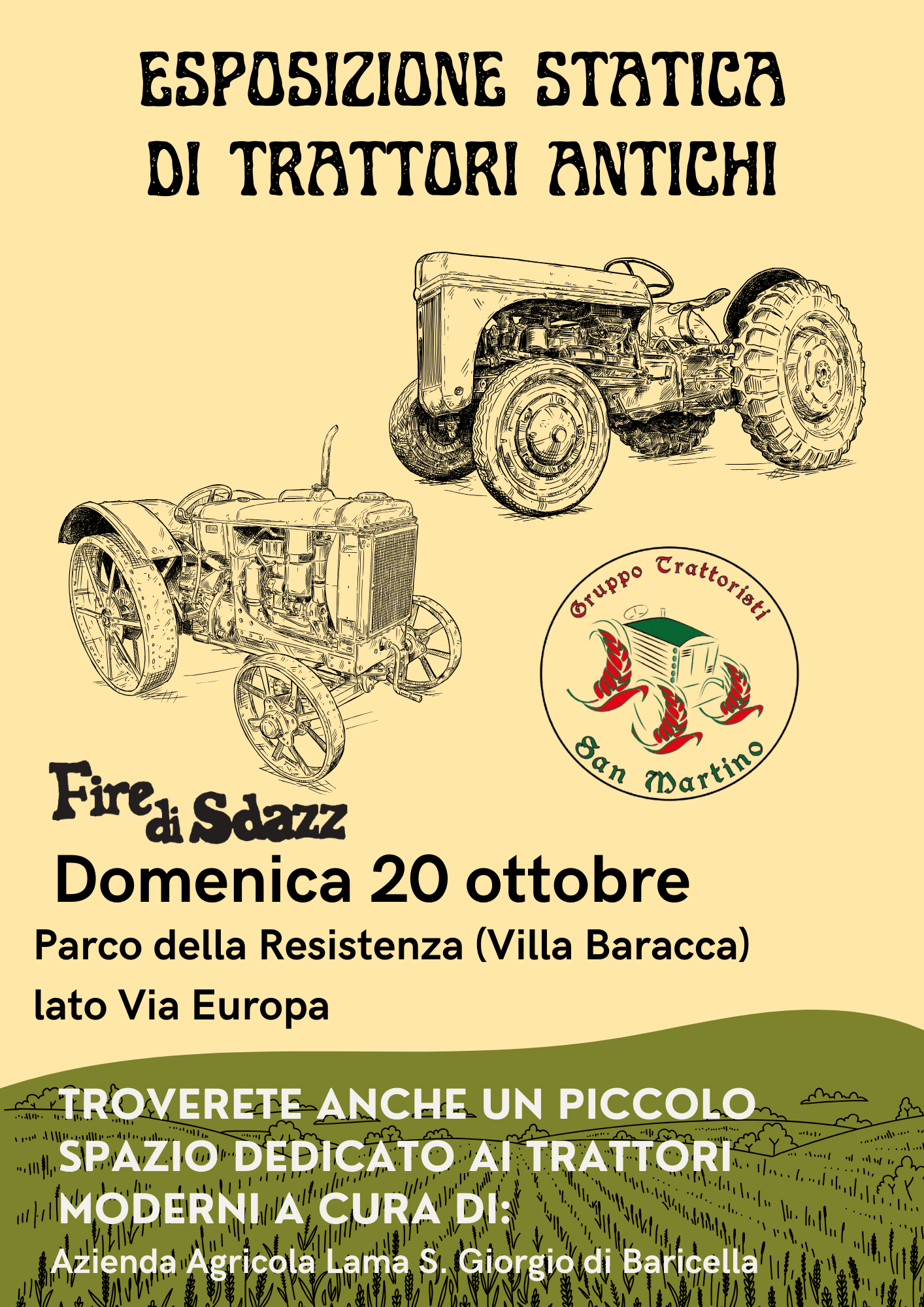 Vi ricordiamo che al parco della Resistenza per l'intera giornata sarà possibile ammirare l'esposizione dei trattori d'epoca del Gruppo Trattoristi San Martino e sarà aperto lo stand enogastronomico dell'Associazione culturale Partycella, promotrice delle iniziative!