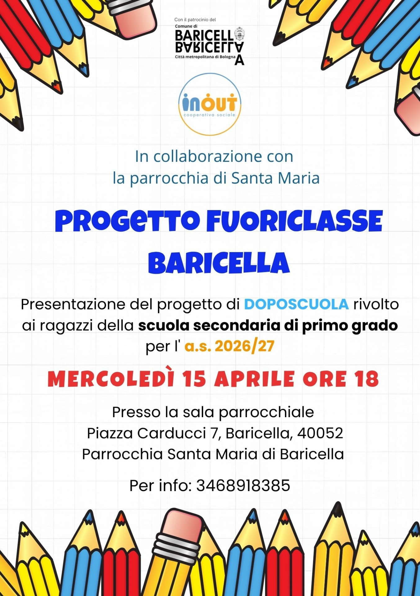 L’iniziativa è dedicata alla presentazione del progetto Fuoriclasse, il doposcuola rivolto ai ragazzi della scuola secondaria di primo grado per l’anno scolastico 2026/2027.