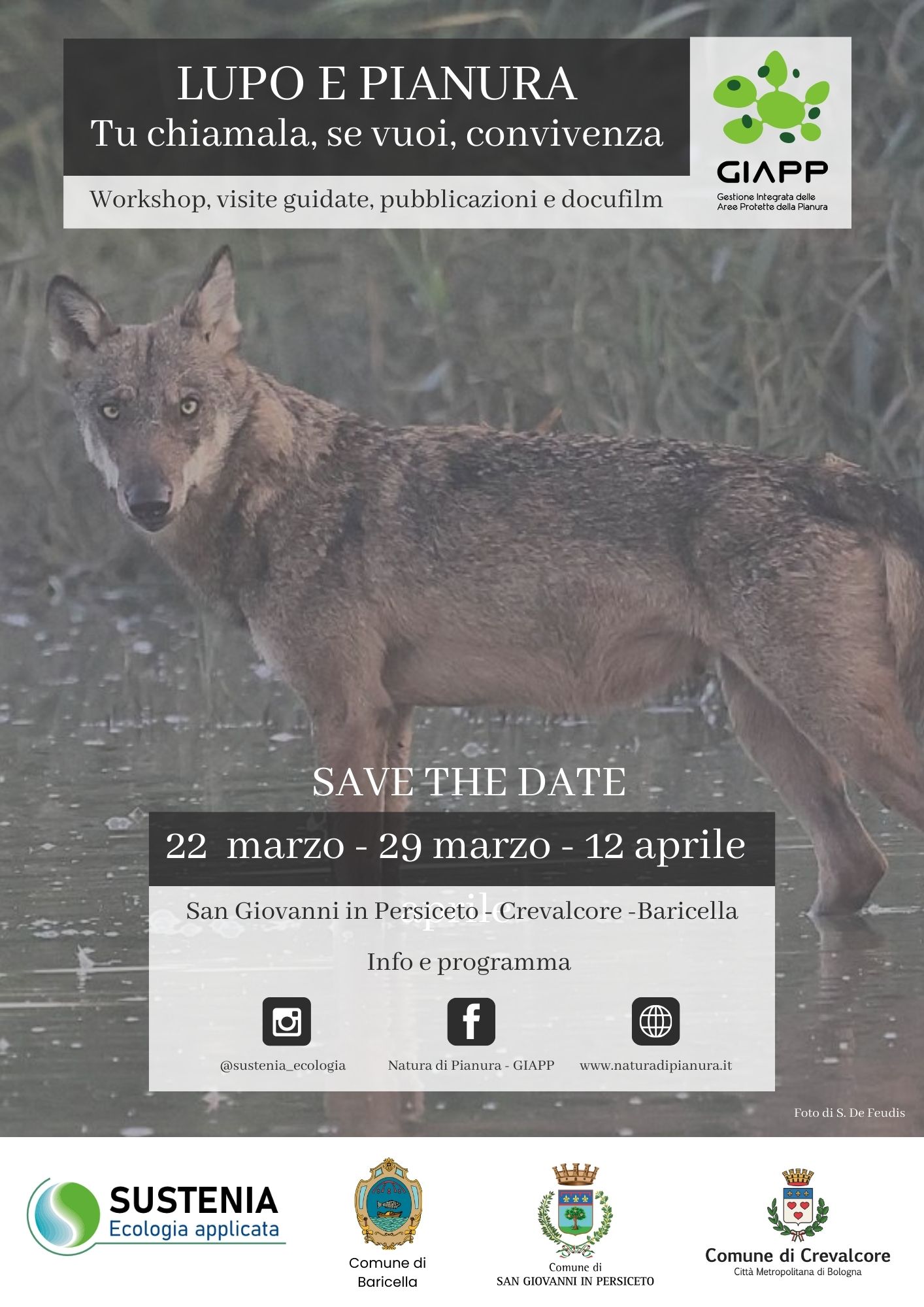 Lupo e Pianura: tu chiamala, se vuoi, convivenza: questo il titolo dell’iniziativa del Giapp (Gestione integrata delle aree protette della pianura) che prevede workshop, visite guidate, pubblicazioni e docufilm. Un ciclo di incontri per esplorare il ritorno del lupo in pianura e il suo rapporto con l’uomo, per promuovere una cultura di convivenza.