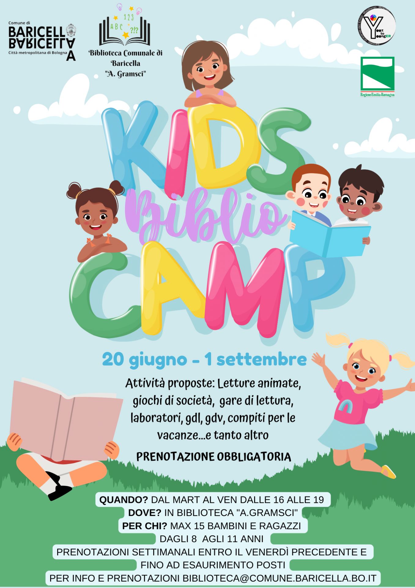 Questa è un'opportunità unica e originale che mette al centro la lettura e la scrittura creativa, la natura e la scoperta del territorio, organizzata dalla Biblioteca Comunale di Baricella. Durante il Biblio camp, proporremo libri diversi ogni settimana in modo avventuroso, partecipativo e creativo. Insieme ai bambini, leggeremo le storie e ne trarremo spunto per giocare e creare. Non mancheranno piccole rappresentazioni teatrali, la musica, l'arte e il cinema!