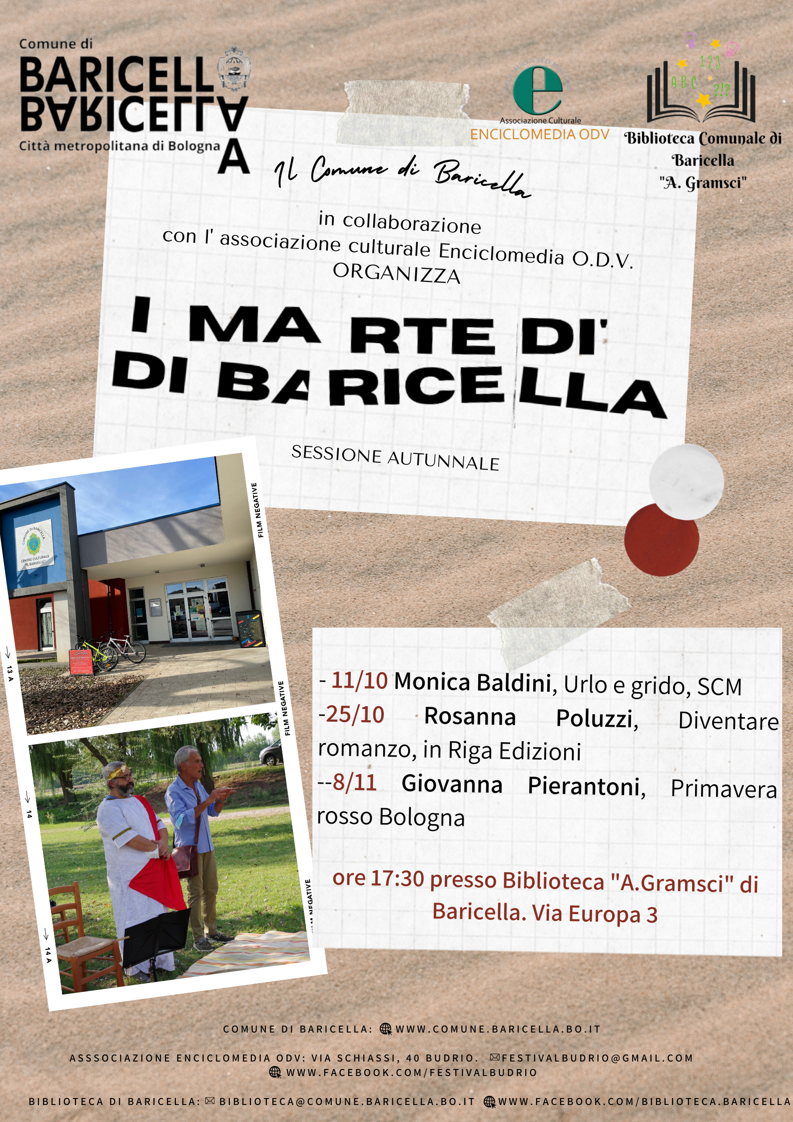 L'evento "I martedì di Baricella" è stato ideato nel 2020 e riproposto già nella scorsa primavera e promosso, in una strategia di rete coordinata, da Amministrazione comunale di Baricella e l'Associazione Culturale Enciclomedia ODV, un' associazione culturale operante sul territorio.