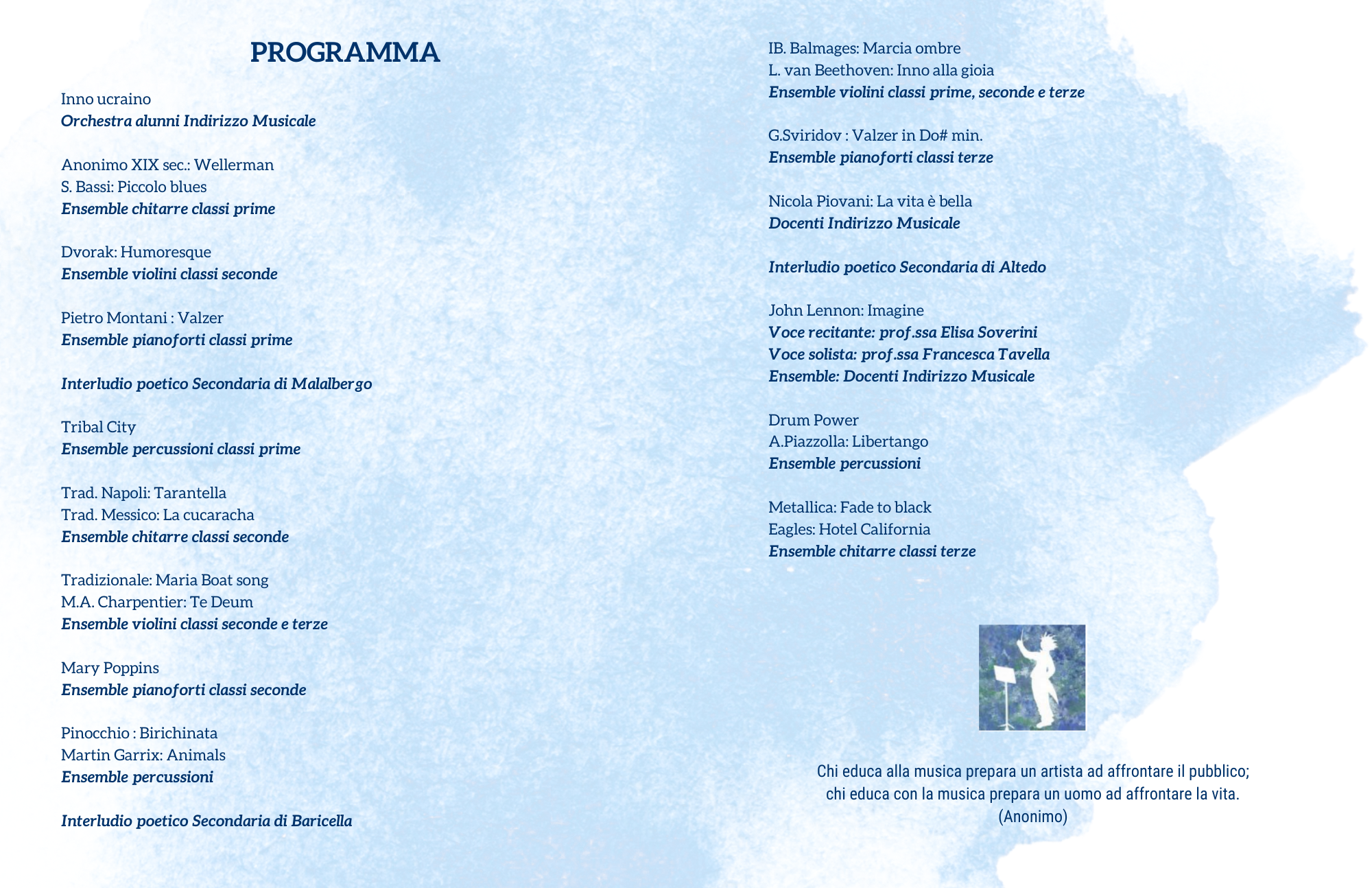 "Concerto per l'Ucraina" degli alunni della scuola secondaria di primo grado ad Indirizzo Musicale.