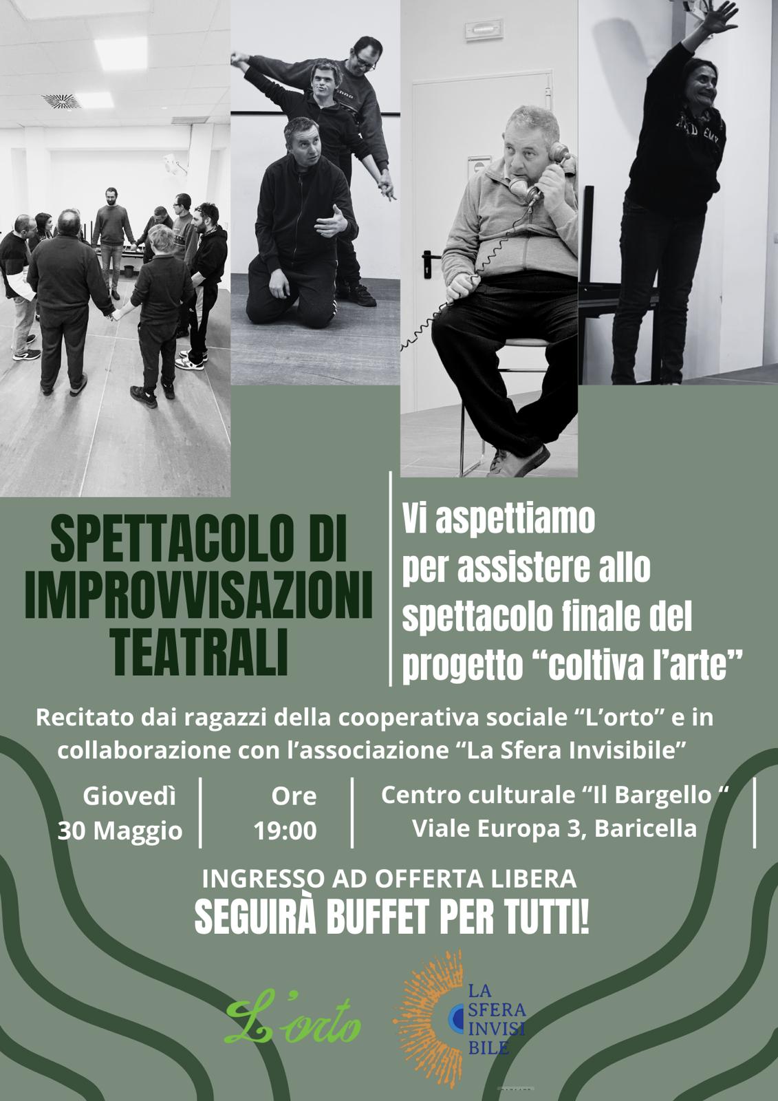 I ragazzi e le ragazze della Cooperativa Sociale L'Orto si esibiranno, Giovedì 30 maggio, in una rappresentazione conclusiva del progetto teatrale "Coltiva l'arte" in collaborazione con La Sfera Invisibile.