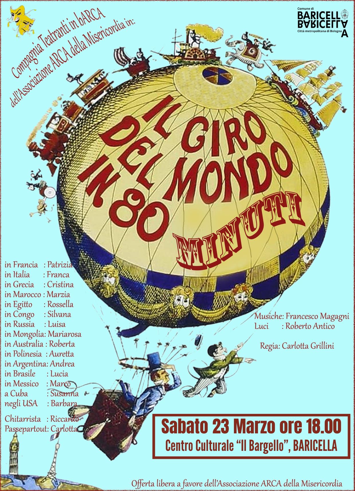 Sabato 23 Marzo alle 18.00 la compagnia dei Teatranti in bARCA mette in scena lo spettacolo teatrale "Il giro del mondo in 80 minuti".