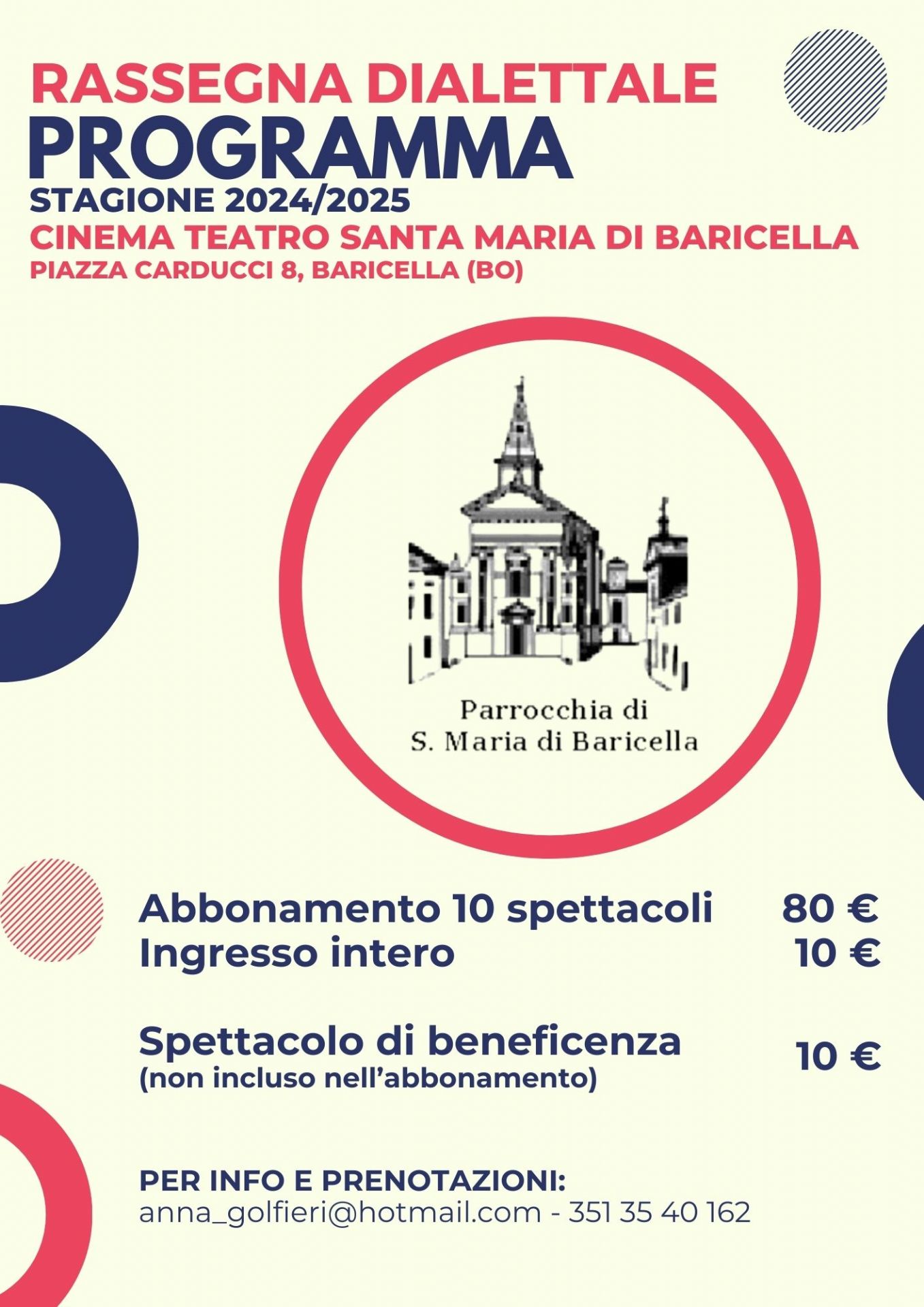 Anche quest'anno, grazie all'impegno della baricellese Anna Golfieri, il Teatro Santa Maria di Baricella propone da Novembre ad Aprile una stagione di esilaranti commedie in dialetto bolognese, una serie di spettacoli per conservare la bellezza e la tradizione del dialetto delle nostre terre.