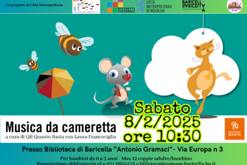 Sabato 8 febbraio alle ore 10:00 presso la Biblioteca di Baricella, via Europa n. 3 si terrà l'evento " Musica da cameretta", un progetto di Città Metropolitana, a cura di QB Quanto Basta con...