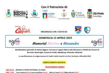 Domenica 13 Aprile 2025 dalle ore 9.30 si svolgerà presso lo Stadio G. Soverini in via Don Zamboni a Minerbio il Memorial Martina e Alessandro, manifestazione giovanile di atletica leggera,...