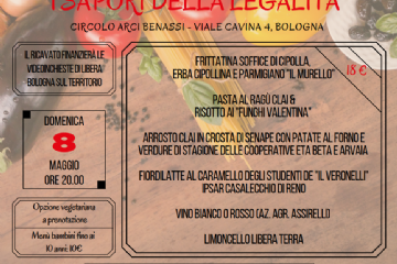 Domenica 8 maggio 2022 alle ore 20:00 si terrà, presso il circolo Arci Benassi- Viale Cavina 4 Bologna, la 26° edizione della cena "I sapori della legalità".