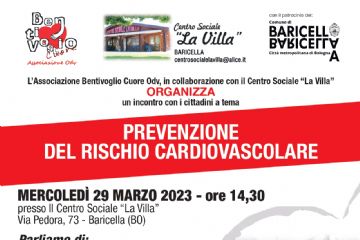 Mercoledì 29 Marzo 2023 alle ore 14:30 presso il Centro Sociale “La Villa” sito in via Pedora, 73 - Baricella (BO) si terrà un incontro sulla PREVENZIONE DEL RISCHIO CARDIOVASCOLARE, a cura...