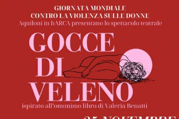 Per la Giornata Internazionale Contro la Violenza sulle donne, Sabato 25 Novembre alle ore 21.00, ospiteremo lo spettacolo teatrale "Gocce di Veleno", ispirato all'omonimo libro di Valeria...